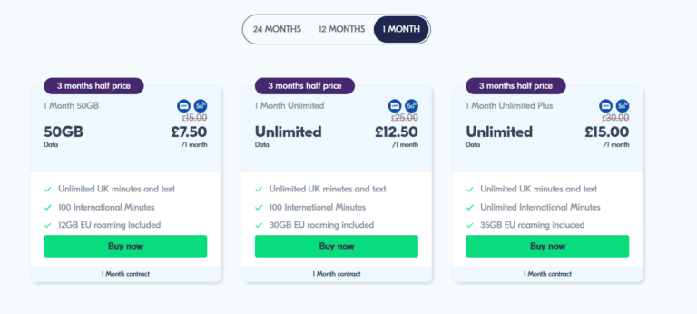 ✔️ 25GB plan for around £5/month (normally £10)