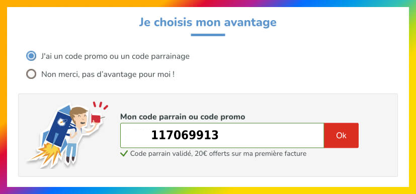 - Vous recevrez un crédit de 20€ qui sera déduit de votre prochaine facture mensuelle ou restitué sur votre compte si vous êtes facturé annuellement